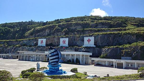 碼頭矗立的「夢幻之魚—橫帶石鯛」塑像